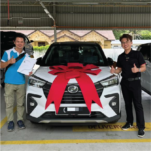 Sehingga kini, saya telah berjaya membantu ribuan pelanggan untuk memiliki kereta Perodua baru. Seluruh proses pemilihan, pinjaman dan penyerahan kereta akan dibantu sepenuhnya oleh saya Perodua Ayer Keroh!