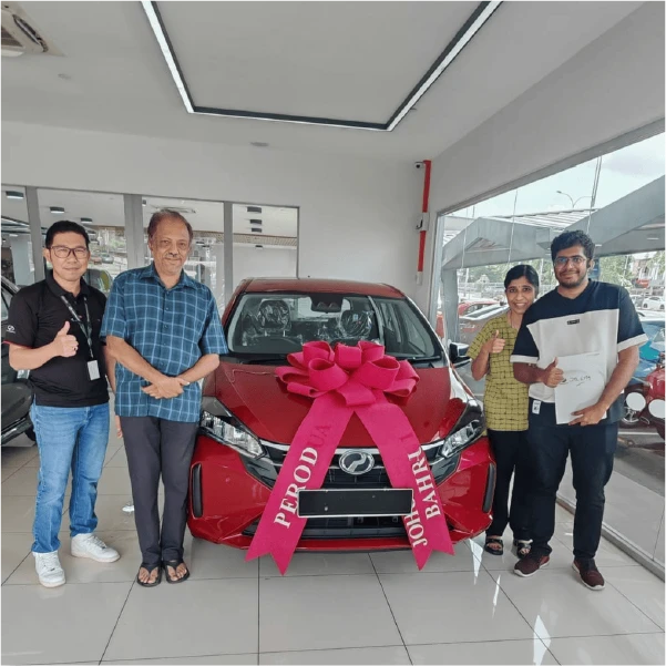 Sehingga kini, saya telah berjaya membantu ribuan pelanggan untuk memiliki kereta Perodua baru. Seluruh proses pemilihan, pinjaman dan penyerahan kereta akan dibantu sepenuhnya oleh saya Perodua Johor Bahru!