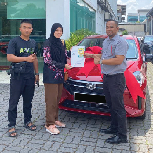 "Terima kasih banyak2 diatas servis terbaik. Saya sangat berpuashati dengan urusan pembelian dengan wakil jualan Perodua di web Perodua.my"