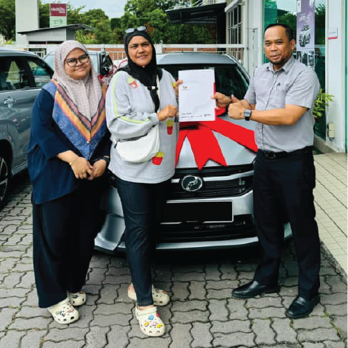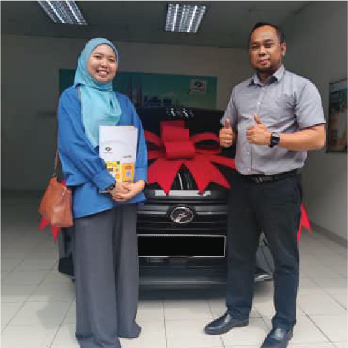 "Sales Advisor Perodua yang sangat friendly dan mudah berurusan. Soalan yang ditanya pun dijawab dengan baik dan sangat-sangat membantu."